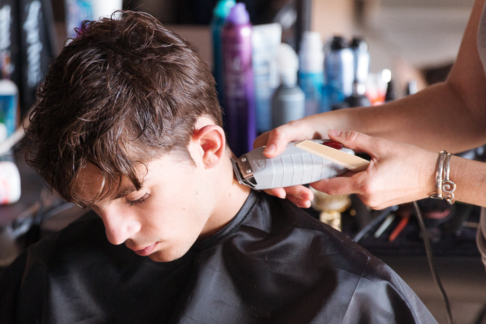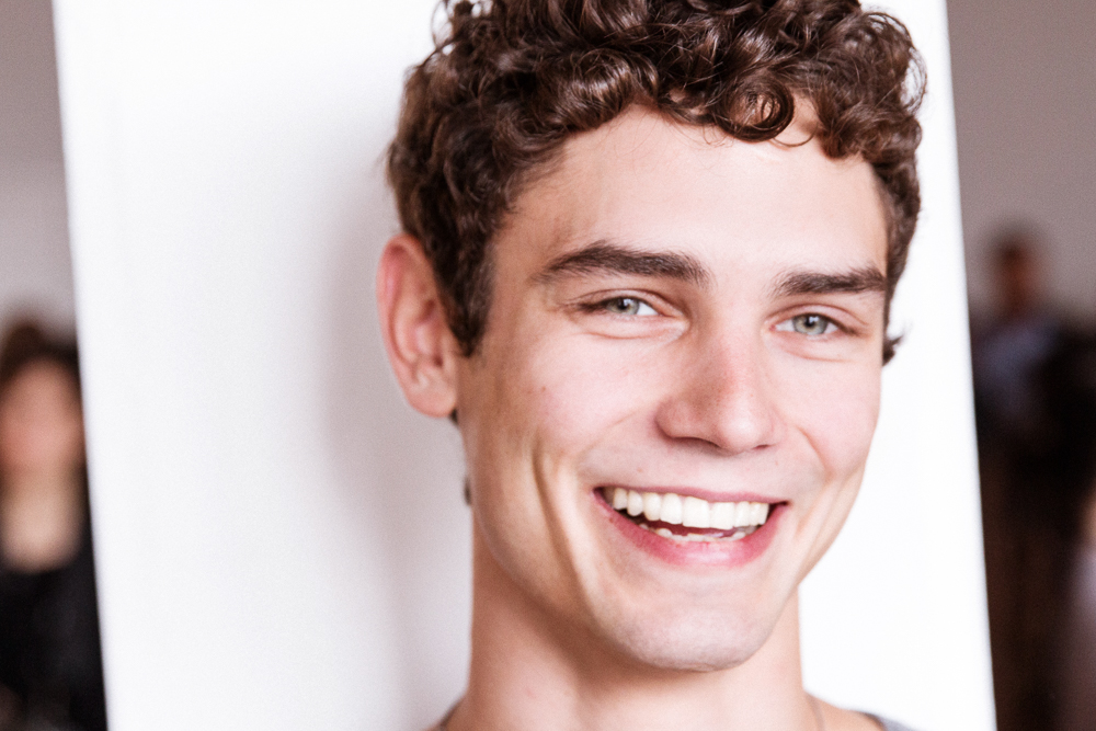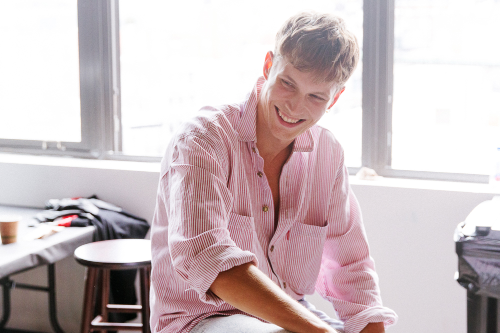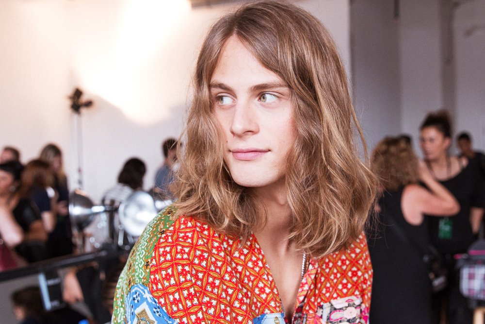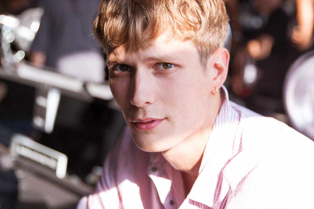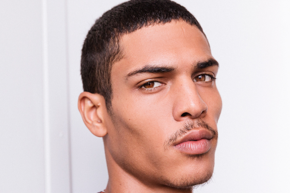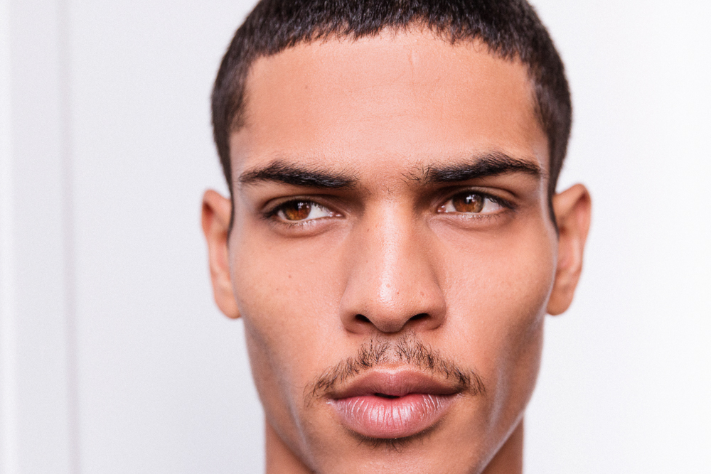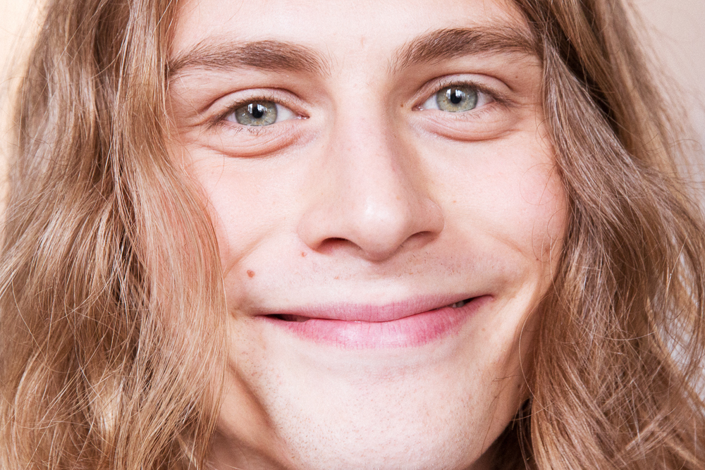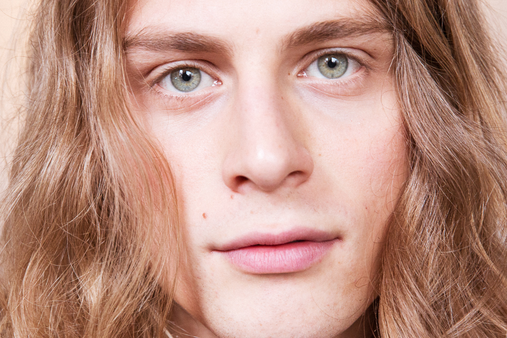 At Lacoste this morning there wasn't really any hair or makeup—they left everyone with an 'un-coiffed' center part (perfected with Bumble Hairdresser's Invisible Oil Conditioner run through dry ends) and very natural makeup (just some MAC concealer). The story wasn't any of that though. It was all the faces. Lacoste is one of those special shows at NYFW that combines their men's and women's collections. Typically, the big men's shows are in Milan. Here all the guys were though, and totally free for photos—male models still don't have much of a frenzy around them, unless you're Lucky Blue. They deserve some frenzy—particularly for some of the little quirks you notice when the styling is toned down. The eyebrow sprouts, for instance. Sometimes they're almost monobrows actually.