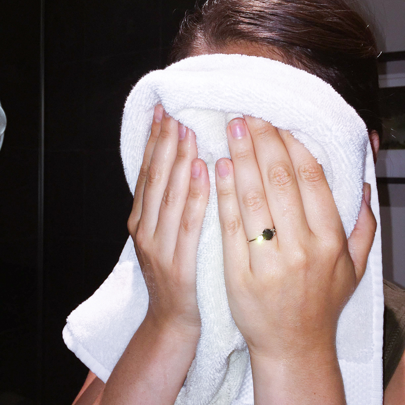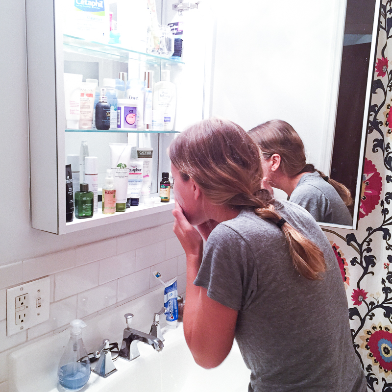 For the interview portion of my 9pm, appointment with Jamie, we leaned against her bathroom sink. All of her chairs were already packed for the move she and her new husband are taking on later this month. Their June '15 wedding spurred Jamie to recommit to her nighttime skincare routine. Now she allows lots of leisurely time at night to reset her skin. After all, the days are jam-packed as the Director of Digital Media at PR agency, Krupp Group, which represents many CFDA/Vogue Fashion Fund Finalists such as Eva Fehren. The newlywed’s earrings and rings are a dead giveaway to this.