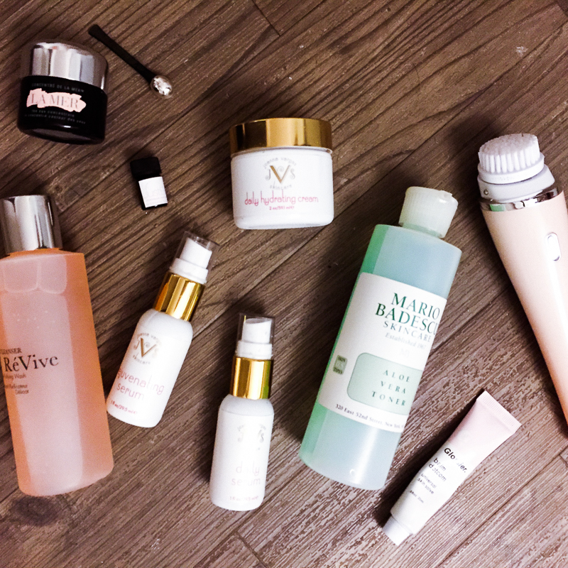 Skin: Comodynes Micellar Instant Cleansing Solution; Mario Badescu Aloe Vera Toner; Philips PureRadiance Skin Cleansing System; RéVive Gentle Purifying Gel Cleanser; Joanna Vargas Exfoliating Mask or Tata Harper Resurfacing Mask; Joanna Vargas Rejuvenating Serum; Joanna Vargas Daily Serum; Joanna Vargas Daily Hydrating Cream or Clark’s Botanicals Deep Moisture; La Mer The Eye Concentrate; Just Be Nourishing Face Oil