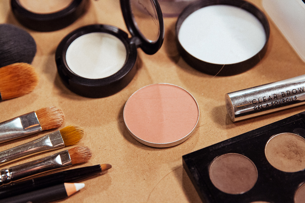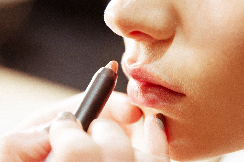 Diane Kendal was on fire here, and the skin looked flawless. She was using four key MAC products—a thin line of Creme Liner in Black on the top lid, a soft pink Powder Blush in Buff on the apples of the cheeks and some Cream Color Base softly blended on the lid and into the hollow. Then, depending on the girl, a red or nude lip pencil—both made extra-matte with a topping of Transparent Finishing Powder.