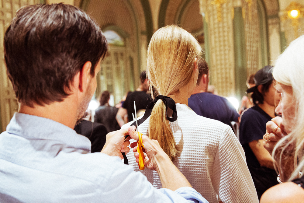 Then there was Guido's hair (interesting note: Diane and Guido teamed up for Wang last Saturday, too—clearly a very different beast). Clean ponytails with a hint of volume tied back with a black ribbon. There was no short hair here—girls with shorter cuts like Xiao Wen Ju were sporting extensions. Alicia Torello went for a clean buffed nail, not a thing on it. It all came together to create aching perfection, as over the top as that may sound. It was so perfect, it hurt a little. The location had a lot to do with as well: Imagine Titanic meets the ballroom from the Beauty And the Beast. The lighting, too, was so lovely and dreamy. But this is nothing new—Oscar turns out perfection every season. It's always nice to have something to rely on.