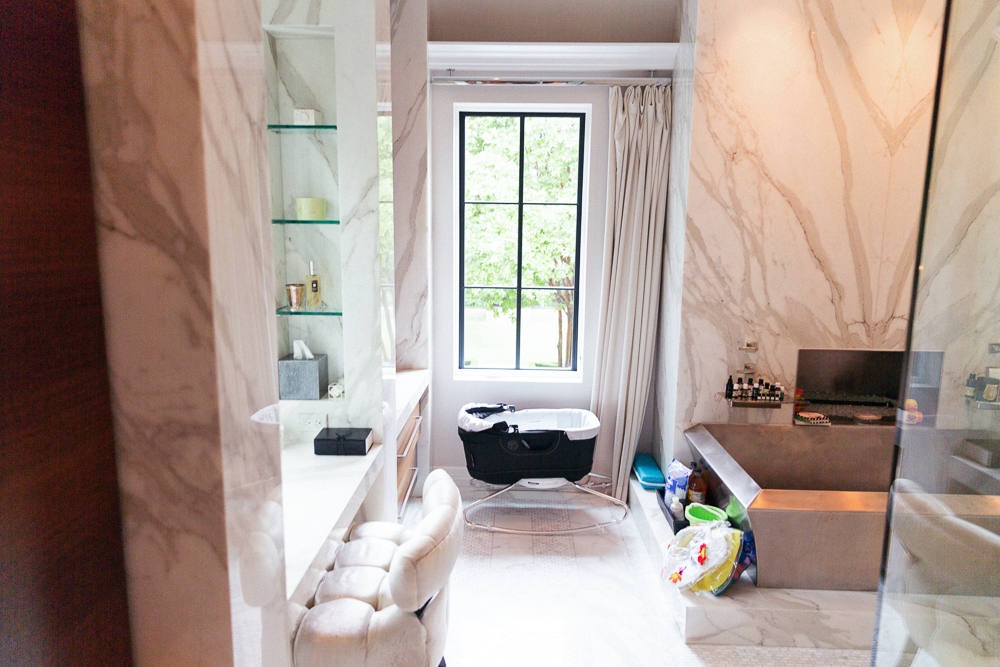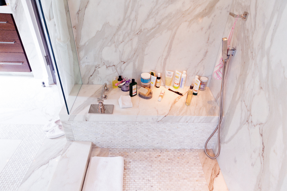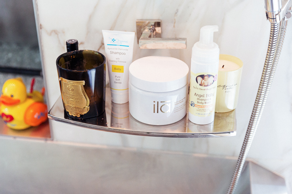 When I come home, I shut everything off. It’s just my world with a t-shirt and jeans. Or I wear pajamas, or Lululemon. It’s the best stuff to work out in because I have a training session in the morning four times a week. I love yoga, but I did yoga all through my pregnancy, so I’m not doing it anymore. To get back into shape we do boxing, we do cardio, and sometimes I swim. When I was pregnant, I would swim everyday. Well, I wouldn’t swim as much, just float around. [Laughs]'
