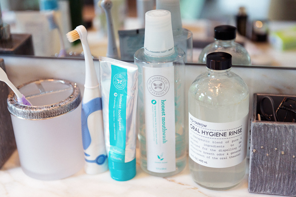 My skincare routine is from my aesthetician Renee Rouleau. She's based in Dallas but sees clients in LA and New York, too. She's really good so I use a lot of her products. My daily routine is I brush my teeth, I wash my face with soap and water, I use Renee's Vitamin C&E Treatment, her Daily Protection SPF 30, and her Firming Eye Therapy. But if I'm going to have makeup on, I use a Pearltouch Moisturizer by QMS—it's from Switzerland. At night, I'll use more—I have Renee's Vitamin C Eye Brightener and this Hawaiian Nourishing Cream—it smells like Earl Grey tea.