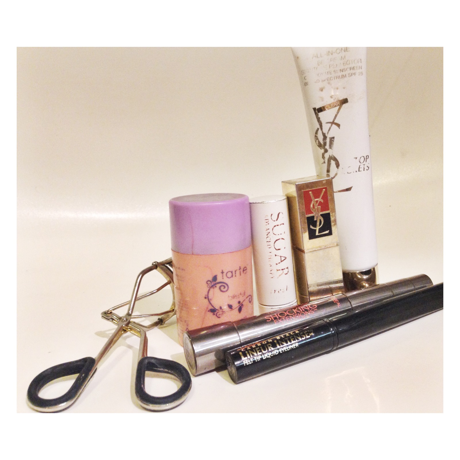 For makeup, I can get ready in under five minutes without a mirror or coffee. I love YSL's All-In-One BB Cream in Clear, and it's probably the most extravagant thing I own. It lasts a super-duper long time. I look like I'm on the verge of death without it. When I run out of that, I get the Garnier BB Cream from Duane Reade. I also love YSL Mascara. Because I was in and out of the airport so much in my modeling days, I did a lot of duty-free shopping. Otherwise, I could never justify purchasing $40 mascara. And if I'm feeling really fancy I will attempt some liquid eye liner, or put on a red lip. I put on a red lip to go to the bodega sometimes. I like YSL red and this e.l.f. Matte Lip Color pencil that I got at Bed Bath and Beyond.