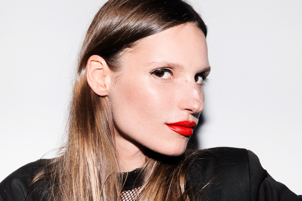 ' Ruby Woo is a classic—super matte, very beautiful. And the Art Pen makes a great line. I don't usually wear mascara, but this makes the perfect accent. Even a little line makes the face, I think. To be honest, I don’t play with makeup that much. All I do is stick to a very natural look and so for me it’s very clean, glowing skin, highlighter to show your bone structure, eyeliner to have an accent on your eyes, and lipstick to make your lips pop. It's very simple and it always works.”