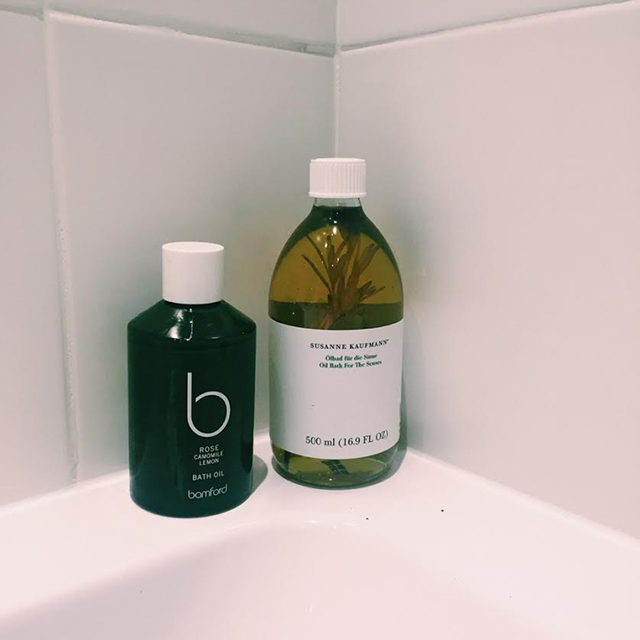 Work can be hard to switch off, so I like to take baths to unwind. I have a lot of bubble bath... Fig+Yarrow Mustard Soak if my dermatitis is playing up (chic!), Susanne Kaufmann Bath Oil if I want to treat myself, and Radox for the everyday. But watching Friday Night Lights in the tub, with my laptop balanced on the bin, is a pretty stellar option for me.”