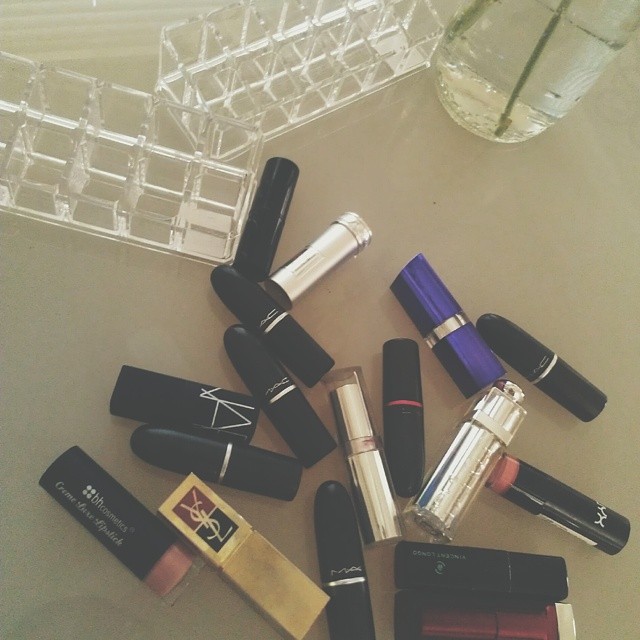 My favorite blush shades are Tarte Amazonian Clay in Exposed and MAC Harmony or Rosy Outlook, but my all-time favorite, the bees-knees of blush for me is Maybelline Dream Bouncy Blush in Rose Petal and Plum Wine. It's perfect for me because the pigment is strong and only needs a light hand—it’ll last forever—and it sits on my skin nicely. For lips, nude lip life. So far my favorite nude lips for my skin tone are Clinique's Chubby Stick in Heaping Hazelnut and Nars' Satin Lip Pencil in Biscayne Park. And the best lip liners include MAC’s Stone and Boldly Bare. I’m also really into liquid lipsticks. I picked up a travel duo set of Kat Von D’s Lolita & Lolita II—the formula is wonderful and the colors are just enough of a step for me to break out of nude lip territory. There's no tugging on the color. But out of habit, I would suggest putting on some lip balm beforehand.