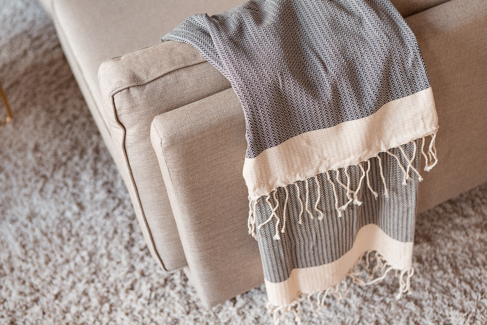 "My bedroom is super minimalist.” Jill says. Not surprising. “Only a bed, pillows and white sheets and one built in shelf with my favorite 30 books. The walls are white and empty and there’s one blue and white oversize african basket in the corner for laundry.” Make any space sparse but inviting with something like this herringbone throw (OK, it's a towel, but I give it the seal of multipurpose approval) and a super large, pastel tie-dye pillow. Set up shop with a book on Yamamoto & Yohji and a candleto reach peak chic-tude. Well done.