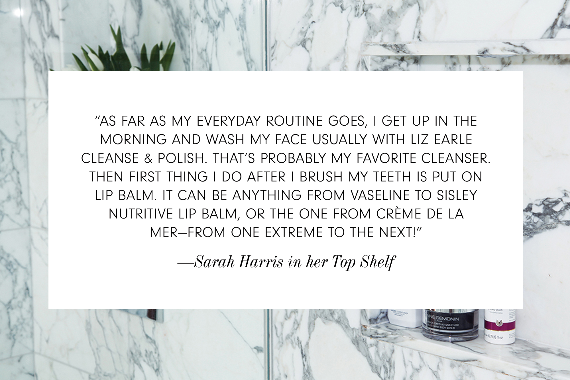 Here's a secret from ITG's editors: It's easy to get people to talk about their beauty routines. Asking Martha Stewart about her lipstick preferences is much simpler than, say, asking Martha Stewart about her thoughts on foreign policy. (She's also more likely to answer.) Whether they're a beauty junkie or not, there everyone's got some semblance of a beauty routine... Do you brush your teeth when you wake up? Congratulations, that's a beauty routine! If there's anything to be learned from the 200-some Top Shelves documented on this website, it's that everybody has something they do in the morning that makes them feel like a functioning human again. Whether your a morning person or not.