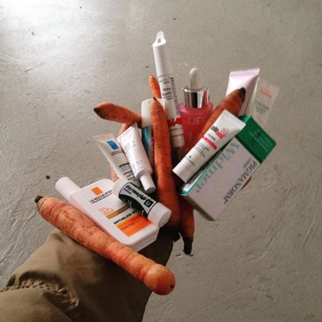 My routine changes a lot, depending on where I am and how I feel—and I like to experiment with different brands. In the morning I usually wash my face with plain water, and then I use the La Mer Ultra Cell Hydration Serum [ed note: not the La Mer you're thinking of!] and, if needed, La Roche Posay Hydraphase Eye Cream. Once the serum has absorbed, I apply a moisturising cream with high SPF—I use La Roche Posay Anthelios 50 Ultra Light Sunscreen Fluid on my face and neck, all year. It has no smell and is super protective. My skin gets dry, and Dermophil Indien Balm is the answer to a lot of my problems. It smells amazing and penetrates the skin really well. It’s kind of like Elizabeth Arden’s Eight Hour Cream or Avène Cold Cream, but totally beats them on every level. They also produce it in a wide stick, like a giant lipstick, which I think is really fun.