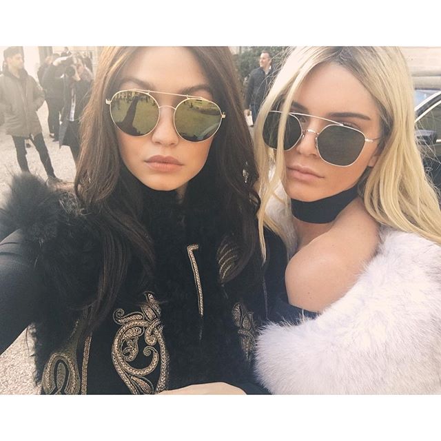 Let it be known that Olivier Rousteing doesn't hate your roots. For today's Balmain show in Paris, he showcased Kendall Jenner as a blonde with about a half an inch of believeable, dark grow-in. Her balayaged best friend Gigi Hadid walked the same show as a brunette (less exciting, if only because if you've seen Bella Hadid, you've essentially already seen brunette Gigi). Then they selfied. As one does.