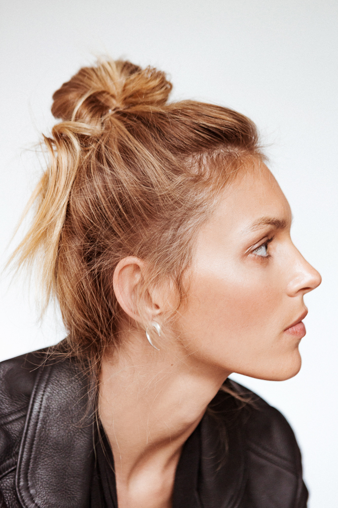 There are a couple of notable things about Anja Rubik’s hair that makes it some of the best in the business. It’s fine but not thin, plus years of blond-ing has imbued it with plenty of texture to work with. And speaking of blond, Lena Ott at Suite Caroline is in charge of Anja’s shade, often doing it in stages to keep that texture just the way it is. Couple all that with the skills of a supermodel, and you’ve got someone who knows how to work a hairdo.