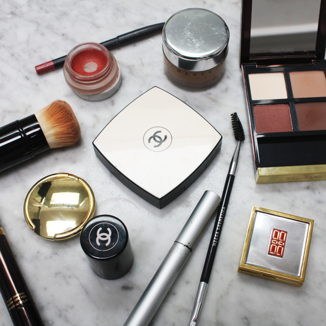 If I need an eye, I like Tom Ford's Eyeshadow Quad in Cocoa Mirage. I was recently on set with this makeup artist, and she taught me to mix my powder eyeshadow with Weleda Skin Food. It makes this really gorgeous sheer cream shadow. I also love RMS Mascara. In the evening, I'll wear a little black Chanel Le Crayon Khôl and smudge it around a bit.