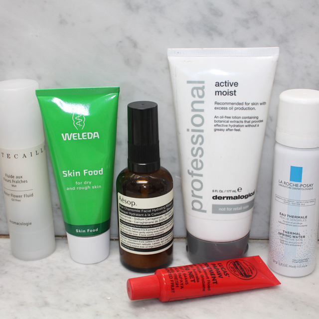Because I work in editorial, it's easy to try out a lot of products. Sometimes I'll get too excited, test a bunch of things, my skin will get super congested. Now I've decluttered my routine—I try to keep it very streamlined. I wash my face with Morihata's Binchotan Charcoal Facial Soap in the shower, toning with an Environ C-Quence Toner, and rinsing off with cold water—I've heard it's good for minimizing pores. Then I moisturize with Chantecaille Water Flower Fluid. It's super light and not gluggy, and it smells like a rose garden. I like to do a moisture mask once or twice a week, and I love the Aesop Blue Chamomile Mask. My skin always feels plump and thick afterwards. I go for regular facials to this Polish woman Sylvia on Crown Street in Surry Hills—I need the steam and extractions, because my skin gets clogged up.