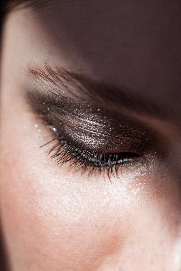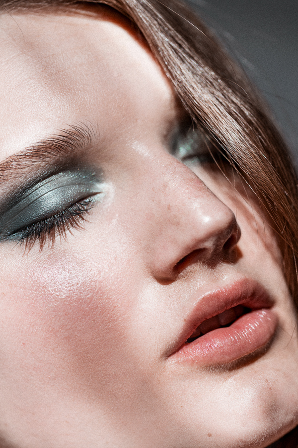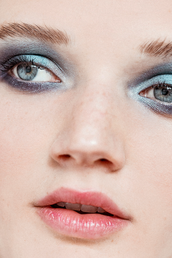 “A really dark eye can look fresh when you pair it with something shimmery,” said Benjamin. But as dark as this look may seem, the concept here is more VS Angel and less Taylor Momsen. The MVP is Troy Surratt’s Prismatique Eyeshadow in Scandal Eyes, with a cream base and an accompanying opalescent shadow for that easy, dimensional layer. Some MAC Extended Play Mascara in Gigablack (used throughout) plus a few swipes of Glossier Generation G Sheer Matte Lipstick in Cake kept the whole face looking cool, but still finished.