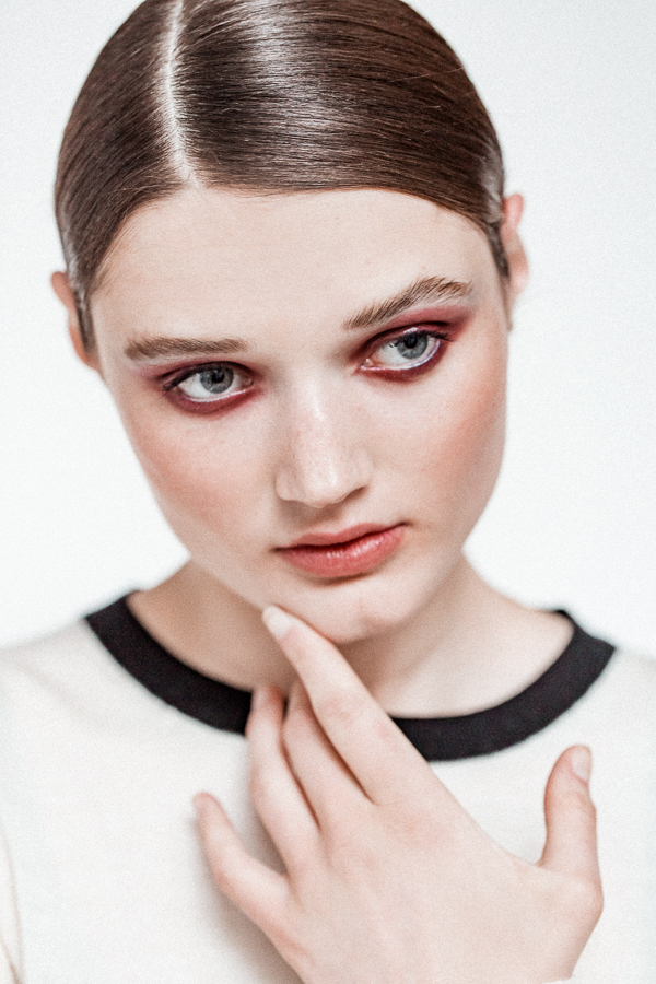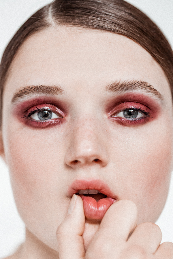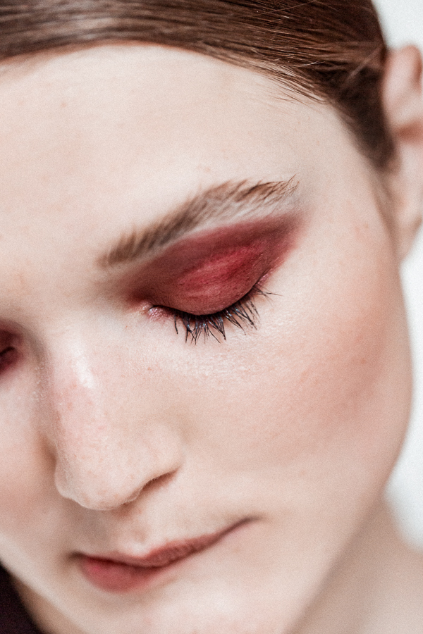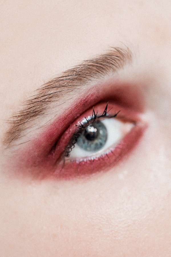 “I like these kinds of shades for the eyes because they feel modern right now and they're nice alternative to black. Also, eggplant works well with every eye color.” For this particular shade of eggplant, Benjamin used the cream color Aubergenious from MAC’s Forthcoming F/W 2016 Palette. There's something about red eye makeup that skews sophisticated, so the best accessory here is light mascara and slicked-back hair. And a little Urban Decay Beached Bronzer, for that almost-summer glow.