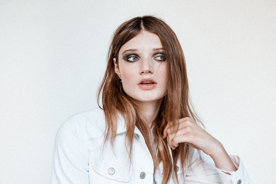 Olivia Jansing (Next) photographed by Tom Newton. Makeup by Benjamin Puckey. Hair by Rita Marmor (Streeters). Styling by Jen Steele.