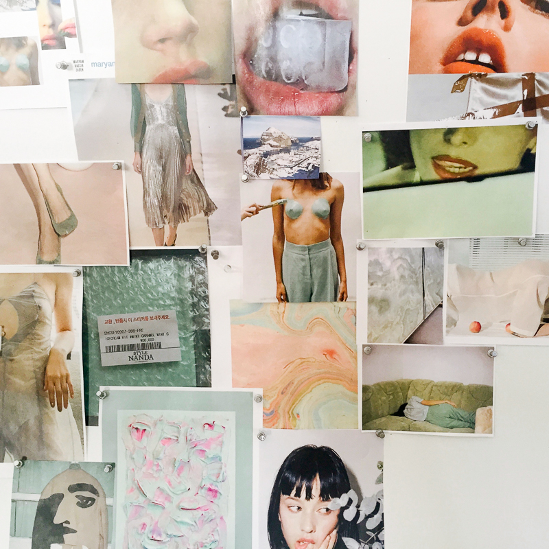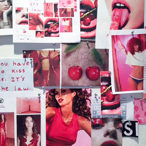 Today, the Balm Dotcom family grows. We’re proud to introduce you to the Flavored Balm Dotcom Trio: Cherry, tangy with a sheer red tint; Rose, pink and sweet but not grandma-y; and Mint, refreshingly cool thanks to an added dose of menthol. But beyond just being new flavors, each balm has its own story, fleshed out in beautiful, collaged imagery with loving care by our Creative team. Picking the scents came first, of course. (Fun fact: We surveyed Glossier HQ on their dream balm flavors, way back when we were deciding which should join the ranks with Coconut Balm Dotcom.) But then came the worlds, built out over the course of 5+ shoots, one honeymoon, and some really excellent styling. A bit more on those below…