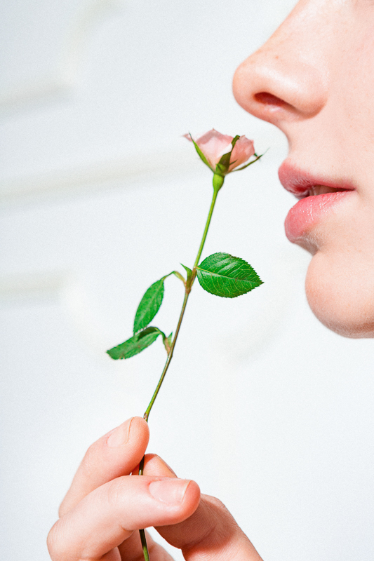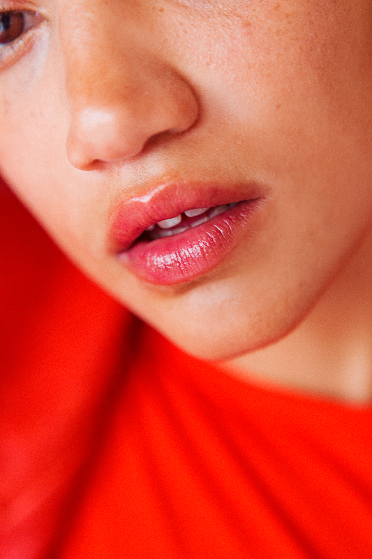 We love a natural rose scent (see: Soothing Face Mist and Milky Jelly Cleanser), but this balm does not smell like any other rose. It’s sweeter, more like a fragrance than an actual bloom. The vision for the campaign was that girl you knew in high school who had a fancy room, maybe with a canopy over her bed, and spent a lot of time being dreamy in it. We shot it late into the afternoon one day at Sandy Liang’s very well-appointed studio in the Lower East Side. In the shots, you’ll see: vintage Calvin Klein tights Annie stole from her mother and huge floral arrangements by Brrch Floral.