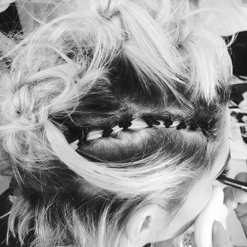 Adir: "Hiii! We were really thinking about the late ‘80s, early ‘90s transition into technology—that's when I was really growing up and experiencing it. That period was all about grunge, so that’s why we bleached out her ends. I pulled a lot of references for that period for me. It was about punk and grunge. It was about the people breaking the mold."