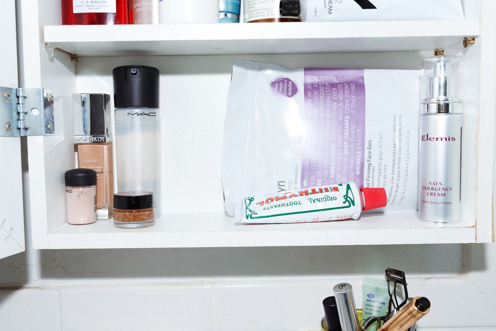 If I feel like I’m getting red or breaking out, I use the Elemis SOS Emergency Cream. It’s basically like an herbal cream that calms your stuff down with amino acids… It’s a little sticky, but you just put it where you feel like you’re about to break out or you just feel like there’s redness or irritation. Because I’ve been traveling for my book tour, I think Skyn Iceland Hydro Cool Firming Face Gels are the best thing. I’m on all these airplanes and it’s super, super drying. You just put them on for 10 minutes and it hydrates everything. It’s apparently supposed to be good for wrinkles, too, but I don’t know about that. I find that to be generally a load of hooey. That said, I do have Lancôme Génifique Yeux Youth Activating Eye Cream. Even if it doesn’t actually have any youth-activation elements in it, I do believe that it’s better than nothing. And it’s not that expensive considering how long it lasts me. Mario Badescu Moisture Magnet with SPF 15 is my main moisturizer though. It feels light, like your skin’s going back to whatever, a place where it wanted to go. Like, it’s like a little GPS for your skin.