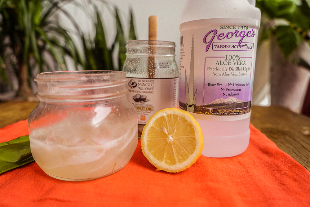 - aloe gel from 1/2 plant (slice plant open and use the inner gel—more on this later)