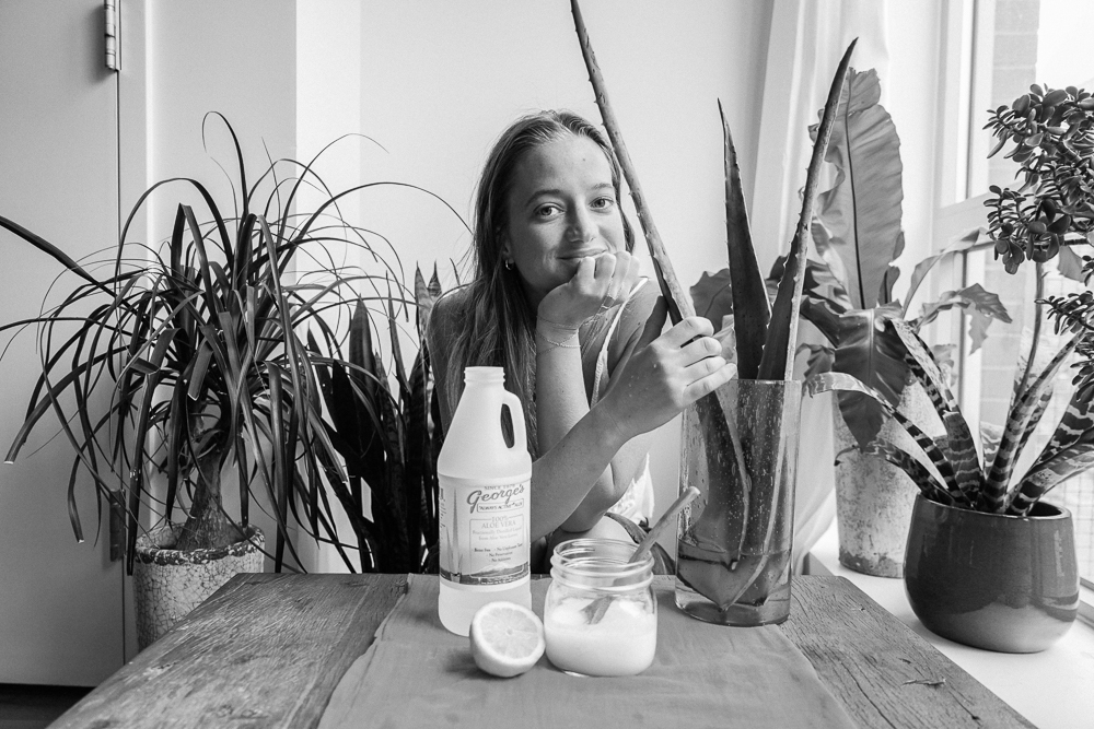 Summer. Sure, there's sweat and humidity, but the season can dry you out, too. With sunburns, chlorine, and the office AC, I find that you might need more than just your standard lotion to keep everything dewy. This is why, when it's hot, I use aloe vera for everything. Every morning, I drink it as part of a wake-me-up tonic. Then I'll use it as a gel mask on my face and apply it to my hair before washing it. Hydration is best when it comes from the outside in and inside out, you know?