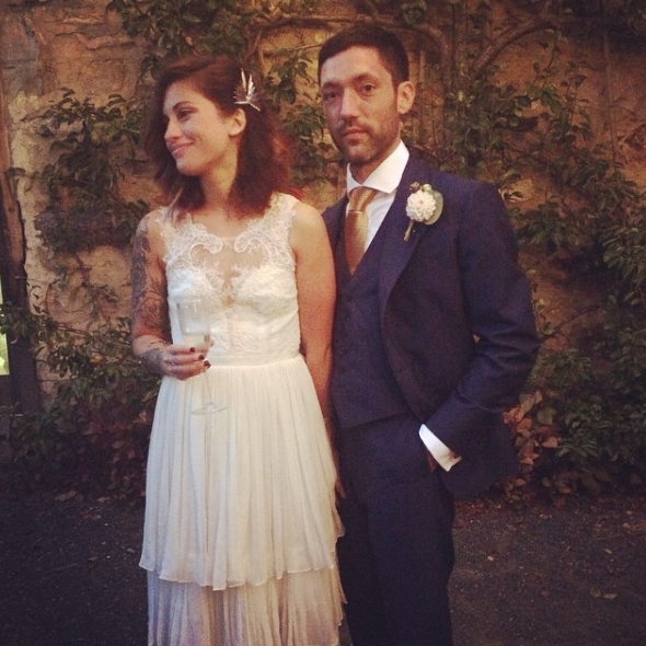 We actually got married pretty recently. For the ceremony, my biggest fear was looking too bridal. I really didn’t want to look like an over-done bride or get caught up in too many wedding trends—no flower crowns. I did my own makeup, save for the lipstick I got very last minute at the Kevyn Aucoin counter at Bloomingdale's. My best friend who married us worked for years at Bumble and bumble, so she did my hair. We got married in rural Massachusetts and I wanted my dress to feel special but not too dressy or glamorous for an intimate barn wedding. I really liked the top of one dress and the bottom of another, both designed by Leanne Marshal, and she agreed to custom make the dress from the two separate pieces, which I highly recommend. I was pretty laid back about the whole day. We were just so comfortable, and we had the best time."