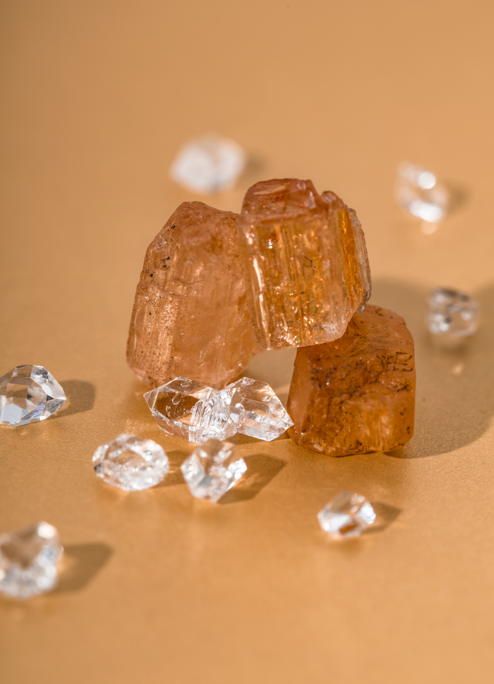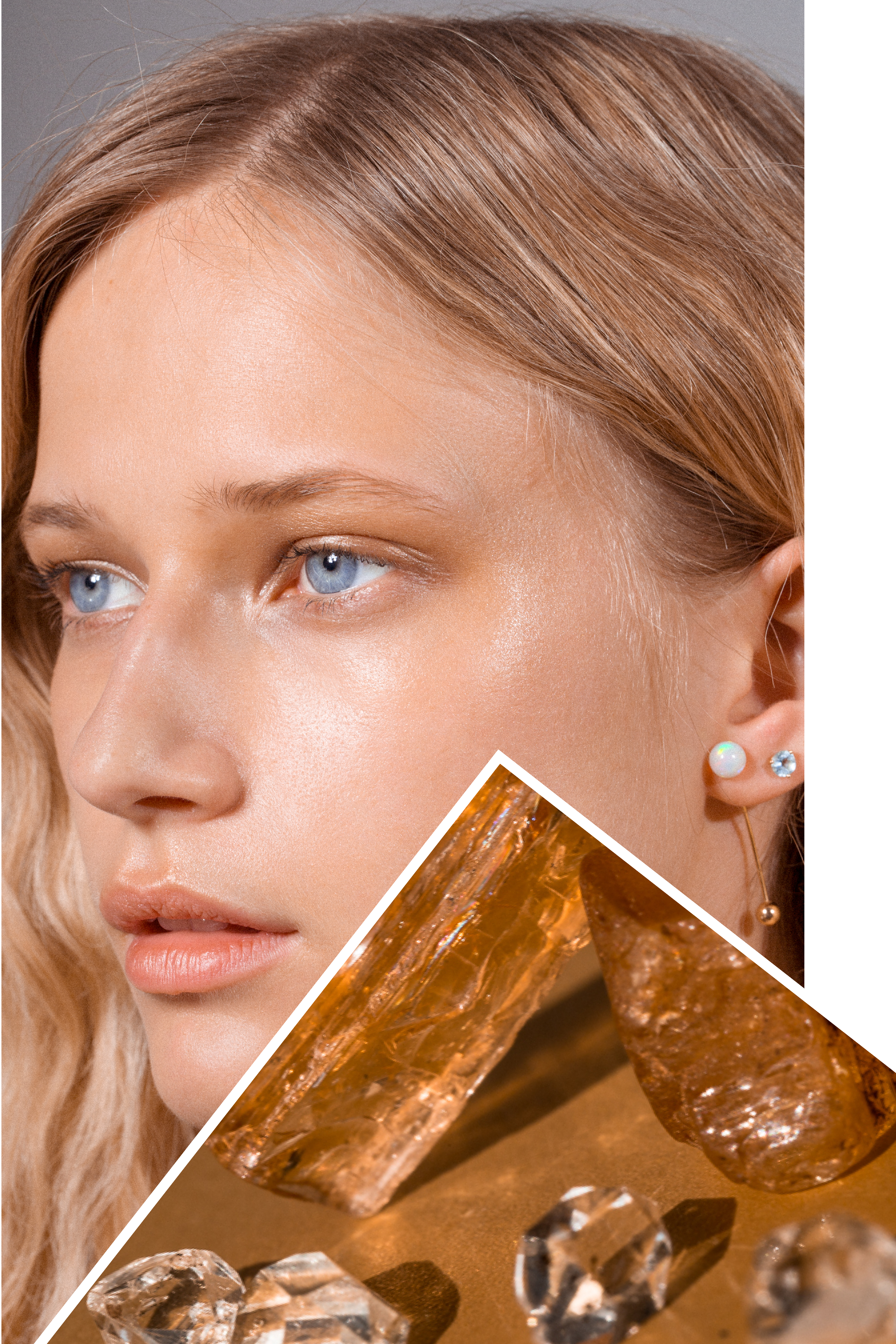 That’s how we came up with the "dew effect" part of Haloscope. Inside is an oil core made with coconut, castor seed, and sweet almond oils that, when applied to skin, bestow just the right amount of natural glaze and good-for-you hydration at the same time. It comes in two shades: There’s Quartz, enriched with real rose quartz crystals, for a pearlescent luster that’s by no means frosty or white—even on darker skintones. And then there’s Topaz, enriched with golden topaz for a bronzey glow. Choose your own adventure based on your highlighting intention. Are you feeling particularly sunkissed today? Or more of a pearly glow? There are no wrong answers.