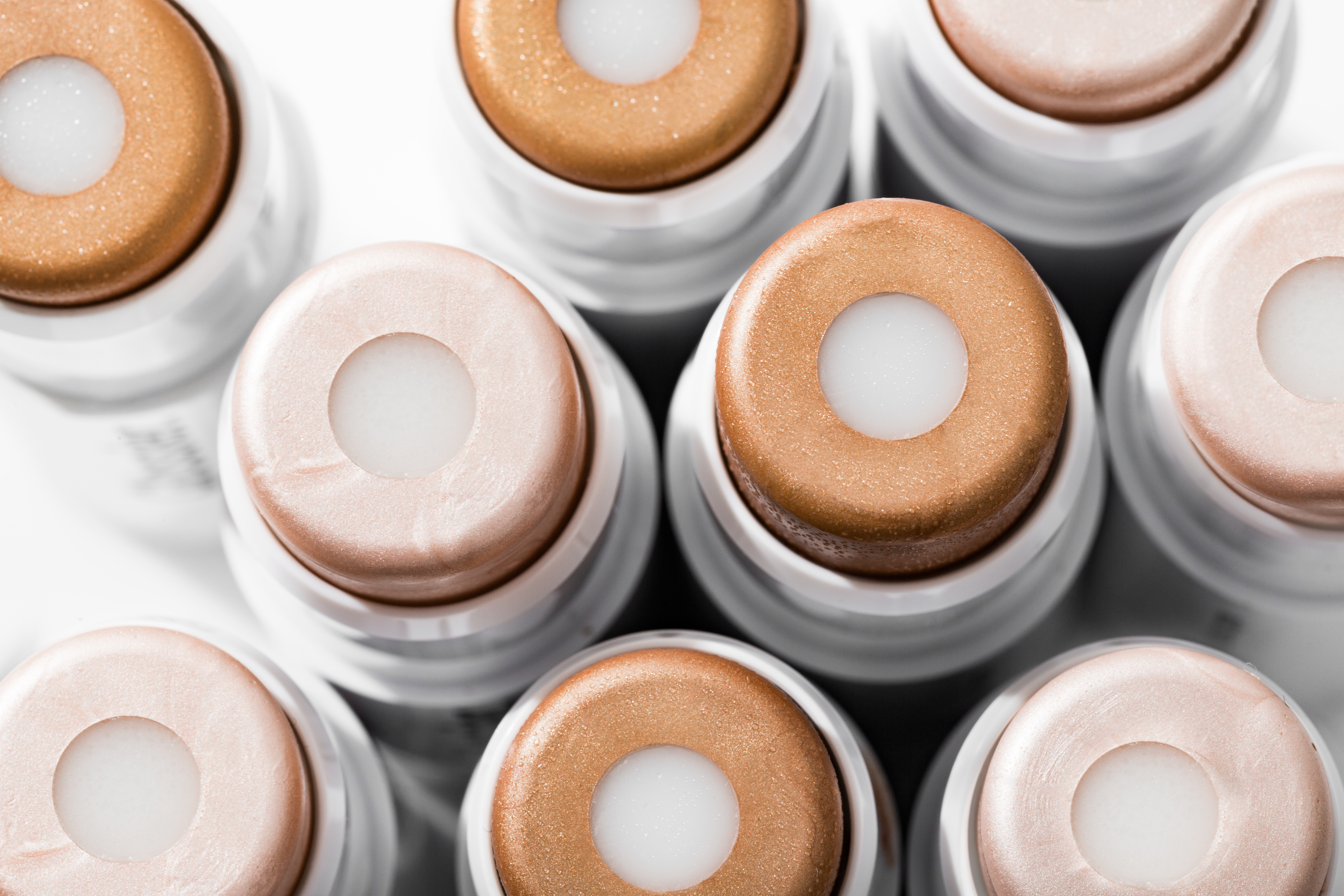 Now, the highlighting landscape is already vast, what with contouring, strobing, nontouring, and just general cheekbone awareness. There’s no shortage of products, but a lot of what’s out there goes frosty or glittery and requires a superior knowledge of blending. What we wanted instead is that Krispy Kreme straight-out-the-oven glazed look...warm on the inside, a little wet and sculpted on the outside. That’s what we set out looking to achieve in a new highlighter—something that gives the glow of supremely hydrated skin.
