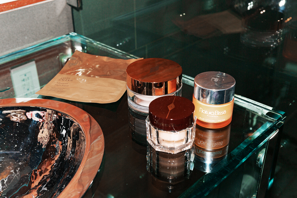 My morning starts with Natura Bissé. The C+C Vitamin Cream in the orange jar is amazing. It’s easy to have something be too greasy under makeup, but this works really well before my routine. Since I started using it, my skin looks better. And I’ve been using masks also—that’s something I love to do. I like the Guerlain Super Aqua Eye Patches. They're kind of pricey, but they honestly make a huge difference.