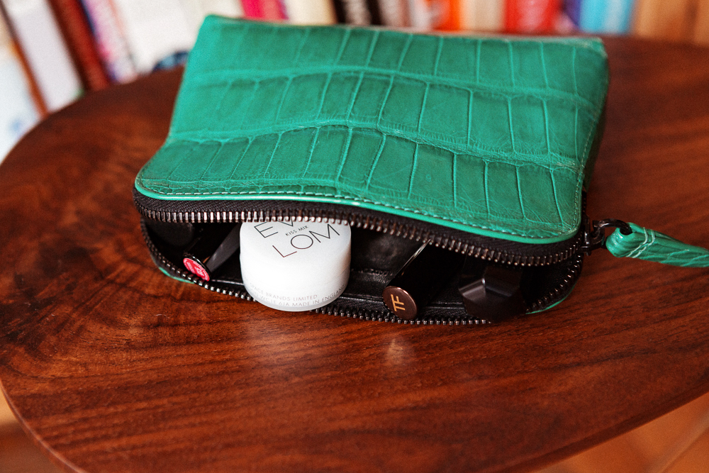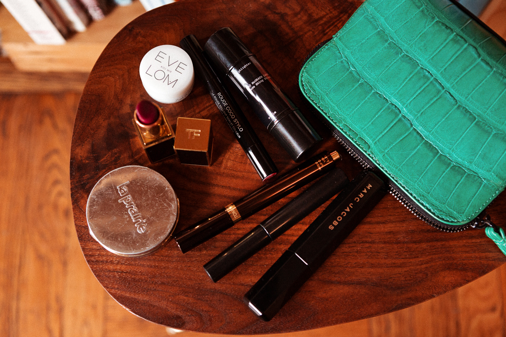I barely do anything on a daily basis. After I moisturize, I’ll do very, very light amount of foundation. Just three dots of Kevyn Aucoin’s Sensual Skin Enhancer with a really big brush to take away the redness. It gives you a lot of coverage, so you only need the tiniest bit and it really evens out the blotchiness I get on my nose and my T-zone usually. Then I fill in my eyebrows with the Troy Surratt eyebrow pencil. It’s very dense so you have a lot of control over the color. Christine Han used to be our beauty editor and she gave me the La Prairie Cellular Radiance Cream Blush in Plum Glow two years ago and I still use just the tiniest amount of it. The older I get, the more I want things to be moist and dewy, so it’s good for that. I’m also obsessed with Pat McGrath’s Skin Fetish 003 highlighter stick. It’s so pretty, and it’s two-sided...you first do the balm, and it keeps the powder on. I also have the Nars Hot Sand Multiple Stick which is pretty good day-to-day, and I also like the RMS one.