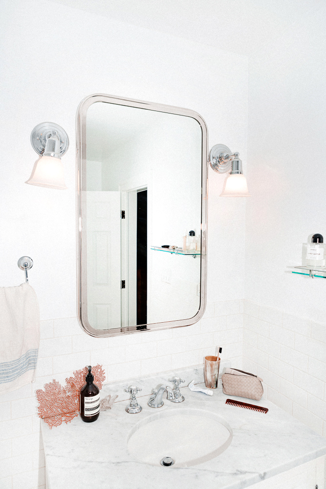 My mascara has to be really light. I use Clinique Naturally Glossy, and I've had it since I was 10 because my grandma used to love Clinique. Troy Surratt has a good one too, and it has that same lightweight, like nothing feeling. I don't like waterproof mascaras—the Clinique probably only stays on for one hour but it’s fine for that hour. I will not do makeup remover at night. I just want to cleanse my face and be done with it. I do the Laura Mercier Secret Brightening Powder if I'm feeling tired. I discovered that after I had my first child and my mom was like, 'You look really good with that, you need to wear that more.' But I don't like a smoky eye. It just looks so heavy! And I'd always rather just do a lip. I like Nars Manhunt, which is a sheer orange, or Suratt Beauty Lipslique Nu De Soleil. Sometimes I'll do a liquid liner, if I'm feeling saucy.