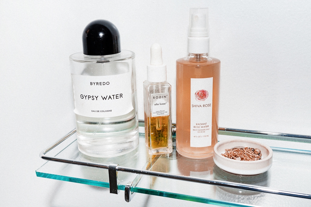 As far as perfume, Olo Palo Santo is amazing—super smoky. And I love lavender oil...sometimes I'll put that on in the morning before I put perfume on. But my fragrance is Gypsy Water exclusively. I like that smokiness, it has that kind of lingering scent. And I love the bottle. I only use one perfume for a decade and then I'll switch. Right now, it's the year of the Gypsy Water.