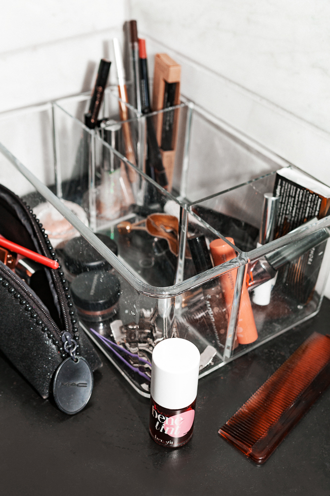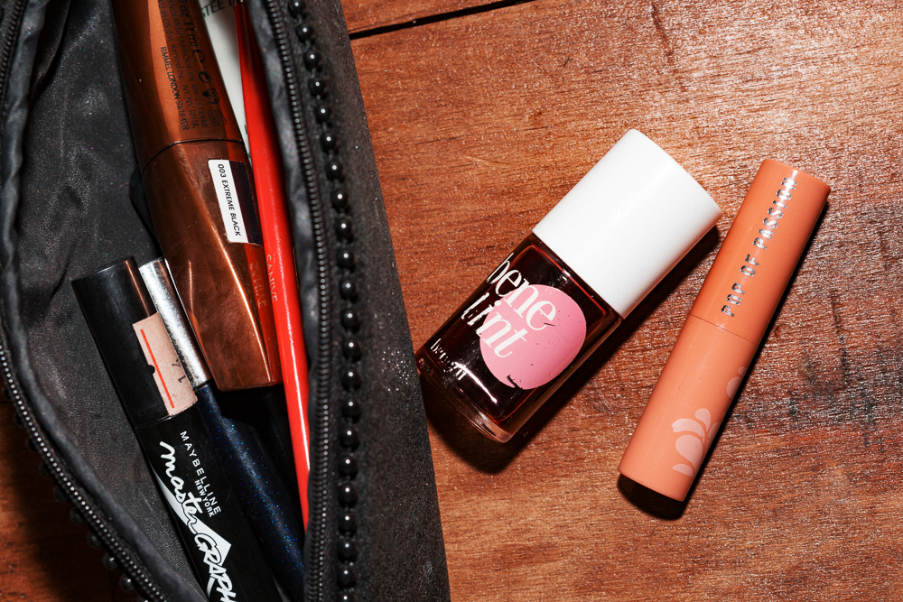 Sometimes I’ll use the classic Benetint, just on my lips. I don’t put it on my cheeks because I feel like I’m red already. Then I’ll wear the Bare Minerals Gen Nude Lipstick during the day. I have a couple others I like but I’ve lost like three lipsticks in the past week! I used to have a Smashbox nude one I really, really loved but I lost it.