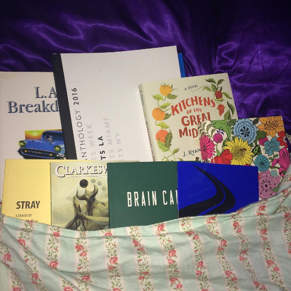 "My name is Rhiannon McGavin (@mermaideleh) and I live in Los Angeles. I work for a nonprofit called Get Lit, which is the largest poetry organization in LA. I write poems for them, I perform for them, I mentor—it's really fun. A lot of the schools we work with don't have proper English departments, so we bring in classic poems—Maya Angelou, Shakespeare, Tupac—and each kid picks a poem and writes a response, and then slams to it. Get Lit came to my high school in 9th grade, so that's how I got started writing. The other organization I work with is Peace Over Violence, which is a crisis center. Both organizations are on the same block, so it's an easy walk.