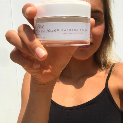 Sunscreen is the most important part of my routine. I use Shade Sunscreen for my face when I'm surfing, because it stays on really well in the water, which is necessary when you're out there for hours at a time. I also use Coola, which is my favorite for my body. It's light and absorbs quickly. I'm obsessed with Dr. Barbara Sturm's products, too. She's a specialist aesthetics doctor based in Germany, and I love her hyaluronic acid serums. They're really good for hydration and they're not sticky at all. I use either her Enzyme Cleanser or the Natura Bissé C+C Vitamin Scrub to wash it all off. The lip balm I use most is the mini pot of Vaseline, because my skin is always feeling a little dry, plus a little Glossier Soothing Face Mist to stay refreshed after a swim.