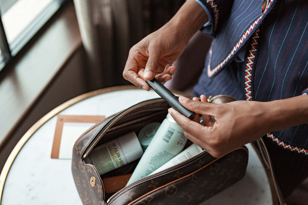 If I’m flying I’ll always put loads of moisturizer on so I just look totally shiny—I like Liz Earle's moisturizer. She's got a Super Skin Concentrate Oil, and I just love oils. I like to be clean and I mean, my face will go shiny anyway, but I don’t mind a shiny face.