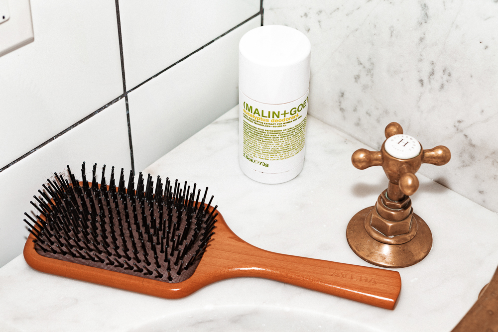 For my hair I have a sort of, maybe 8 or 9-day routine. So I wash my hair with that Rahua Shampoo for Dry Hair, and then I use Liz Earle Conditioner. That’s just got a really nice smell and you don’t have to use loads of it either. I like when a product says it’s oil and it’s actually oil. Not like, a bit of oil and all kinds of alcohol. It's not a leave-in but I leave it in anyway. I comb out my hair and brush it with this big Aveda paddle brush... a lot of people say not to brush afro hair with a paddle brush but I think, that’s what works for me, so I'm gonna use it. Then I'll braid it and leave it drying in the braids. I'll take it out 24 hours later—I actually just took it out this morning. And it’ll dry a little bit in the air and it’ll just be curly.