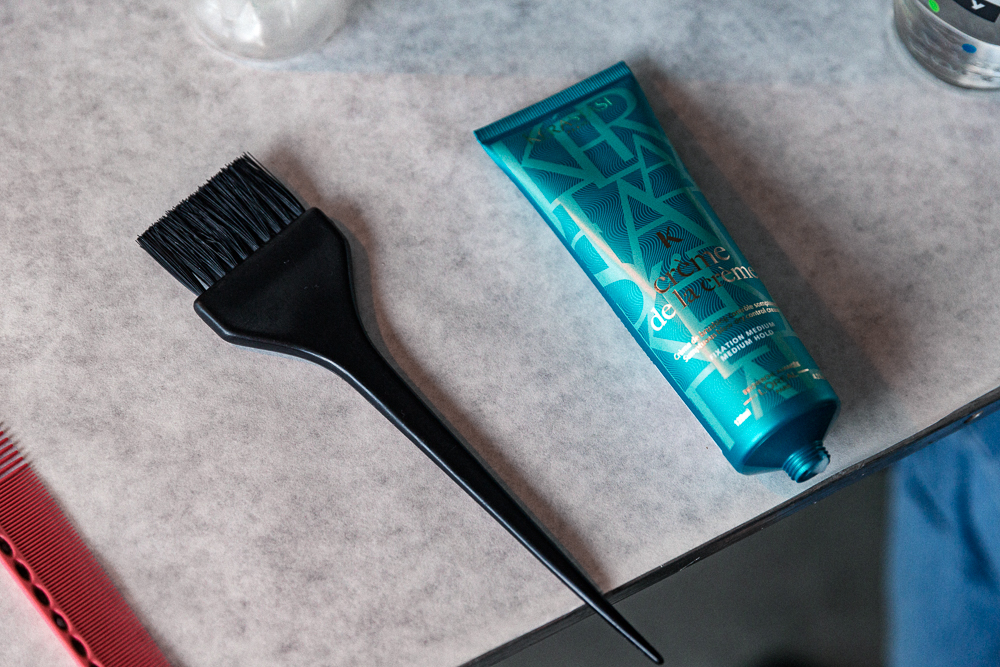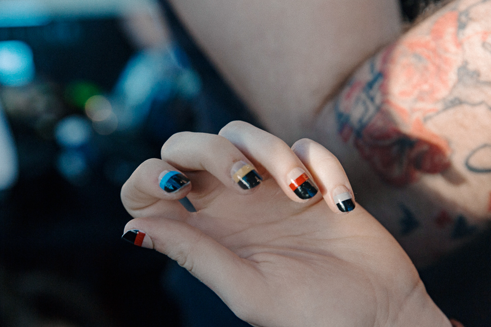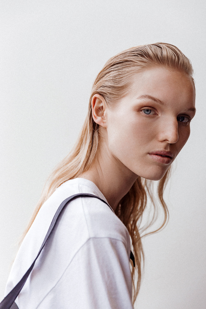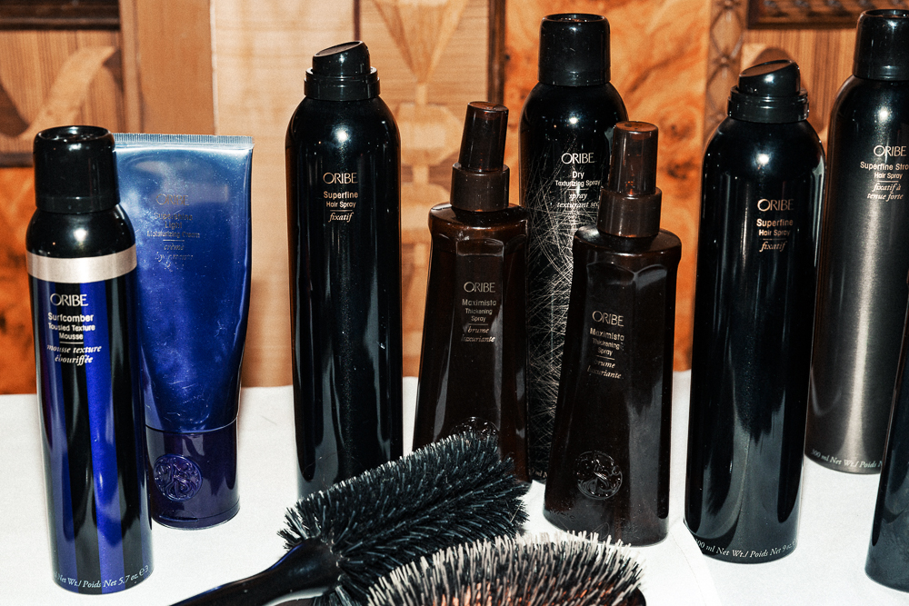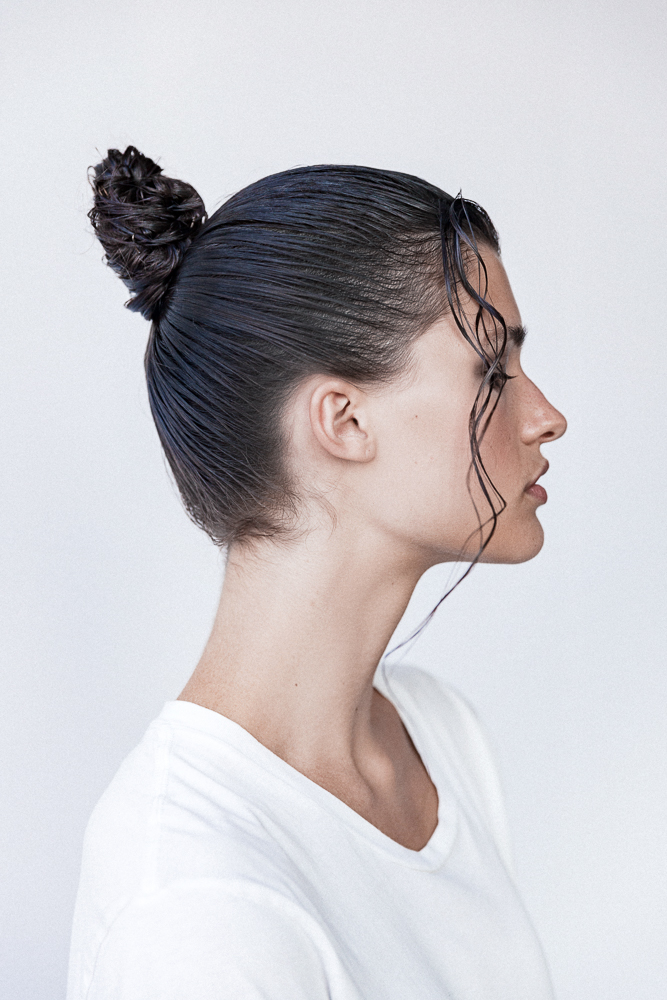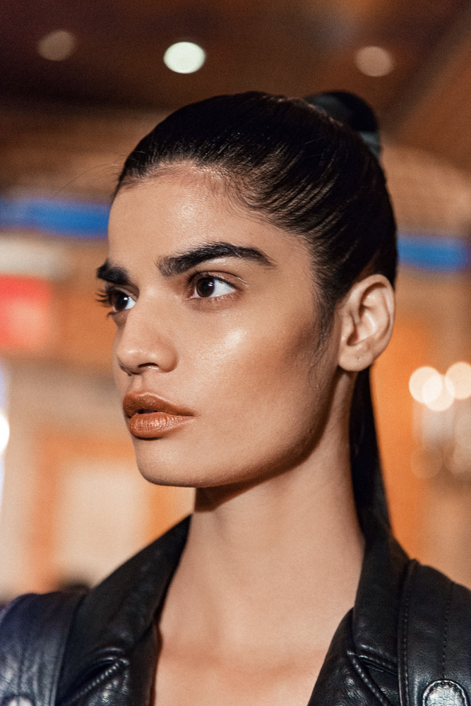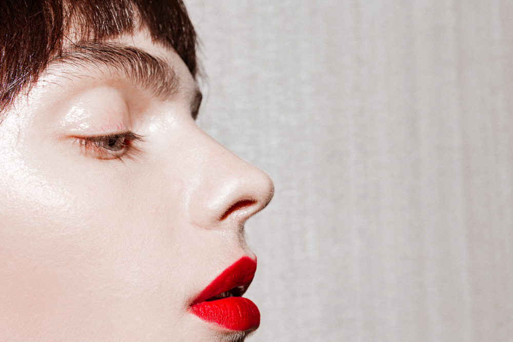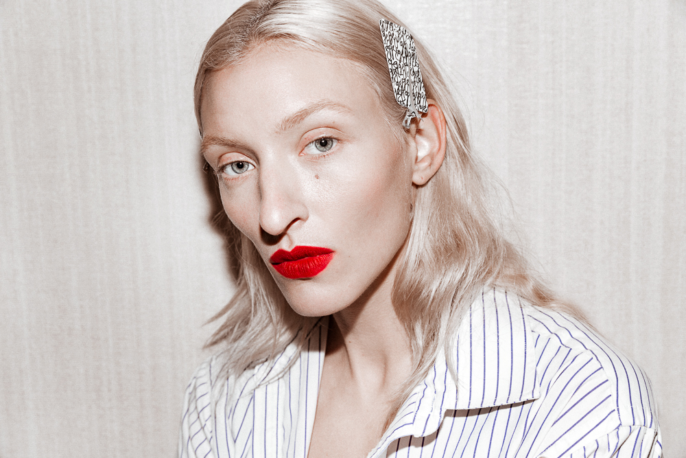 This is Yadim's take on red lips—precise and nuanced. The base is Maybelline Color Sensational Liquid Lip Color in Orange Shot, finished by tapping in the matte Orange Danger over top. Pairs well with some of the most wearable "wet" hair seen to date, care of Tresemmé Hair Gel, a heavy hand, and a paddle brush.