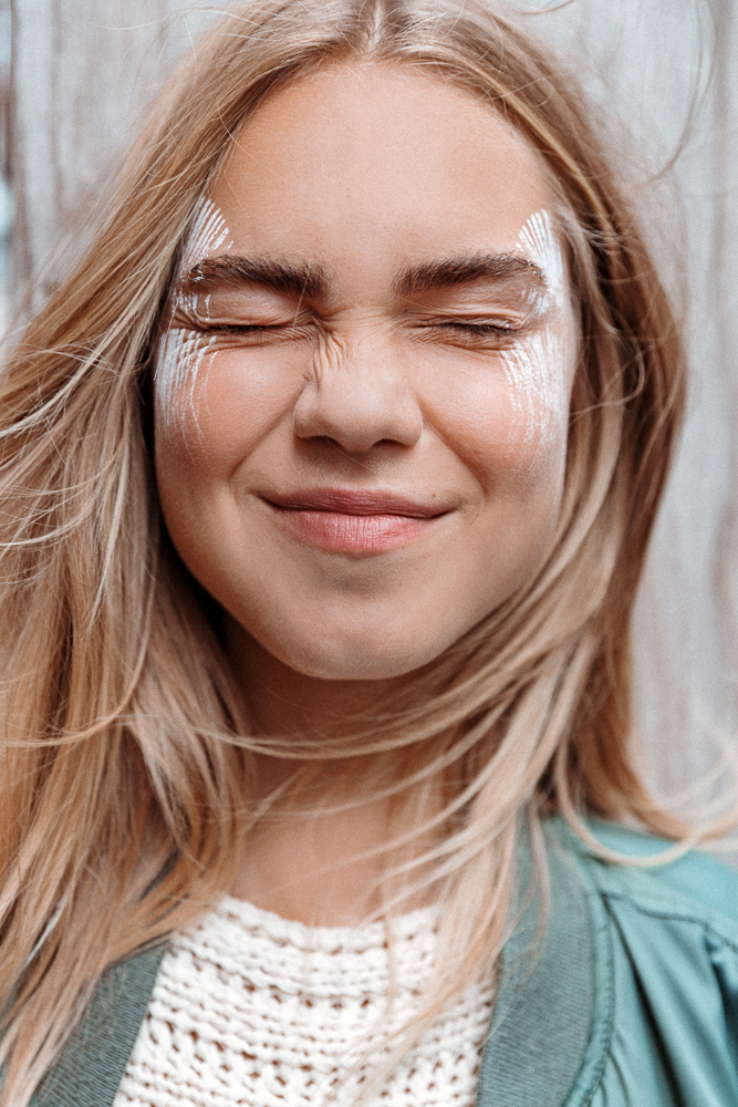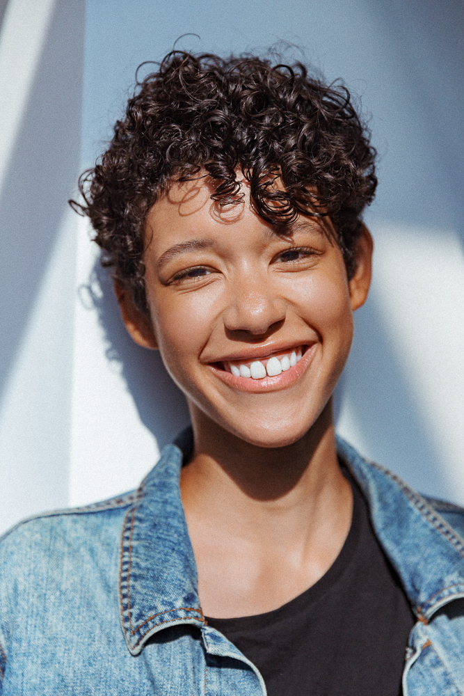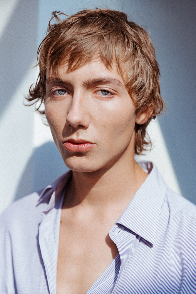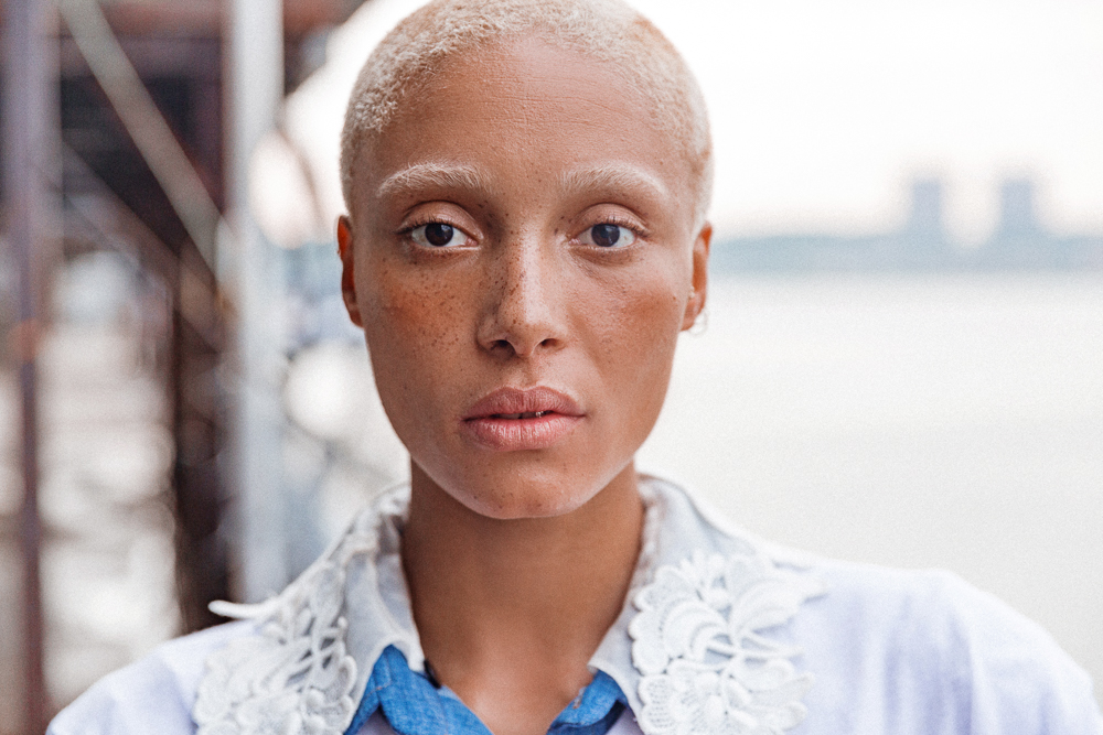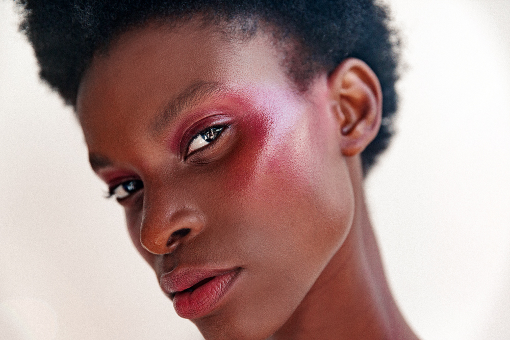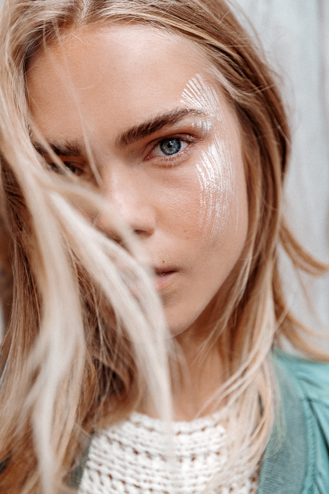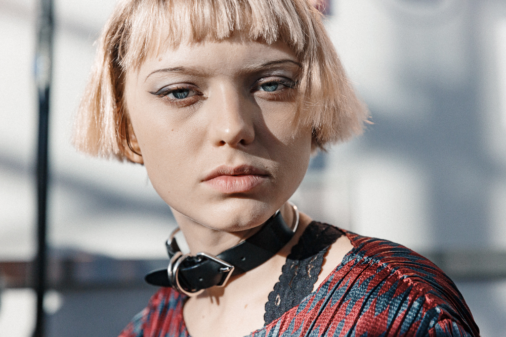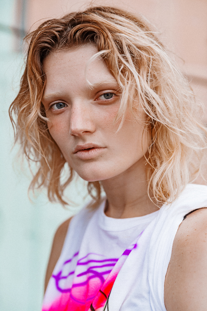 During show prep, Anthony Turner had each of the models wash their hair backstage—using either Bumble Gentle Shampoo or Curl Shampoo, depending on their natural texture. "All the little mistakes we get in the hair after it’s been freshly washed is what we’re enjoying." Also, painted ears.