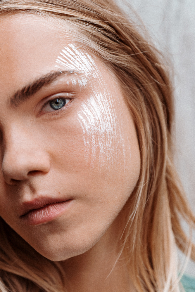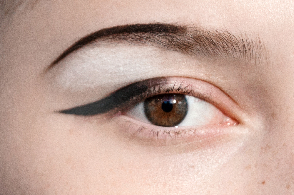 A very sensible makeup look for your next intergalactic garden party. Diane Kendal swept a silver pigment up the sides of the face, from beneath the cheekbone to well above the eyebrow. It's directional runway makeup or just highlighter, depending on who you ask.