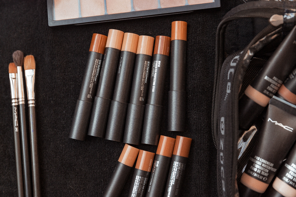 MAC Studio Conceal and Correct, Prep and Prime Transparent Finishing Powder, Brow Set, and Eye Gloss. You can do this at home.