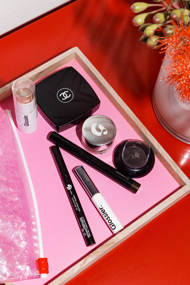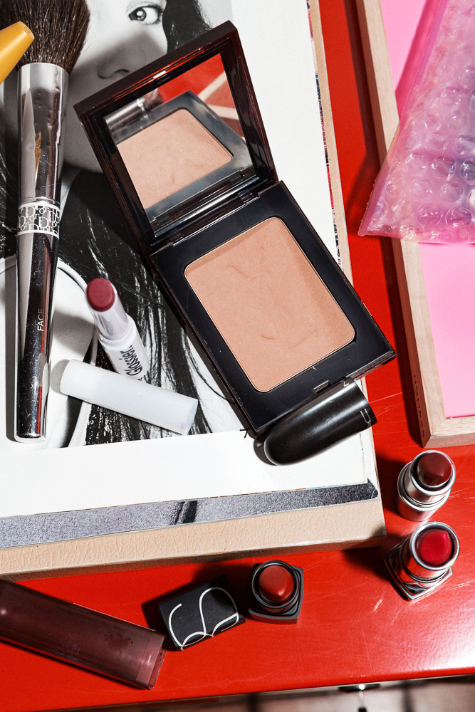 For me makeup has always been about less is more. I know it sounds super French cliché, but it’s true. Plus I spend my days at work trying on new products so the less I have on to start with, the better. The one thing I feel naked without, though, is concealer. I’ll use it all over my face, blended out, instead of foundation. And I just adore the Glossier Stretch Concealer. It hides what it needs to hide but you never see that you have makeup on. A lot of concealers on me are very dry and sit on top but this one always feels like it melts into my skin–more like a skincare product, like a balm. After that, I apply the YSL Terre Saharienne Bronzing Powder because it’s the subtlest on my skin. I use that all over my face just to warm it up a little bit and it sets the concealer in.