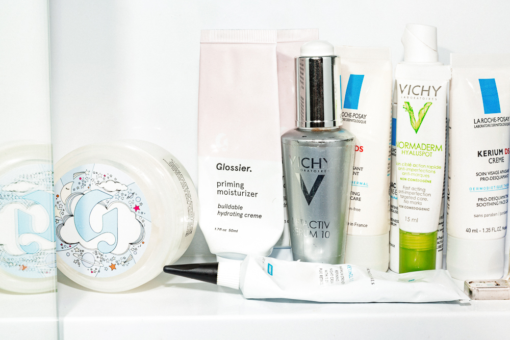 At night I use Milky Jelly on my dry skin to remove all makeup. If I’m too lazy to wet my face, I’ll just use the Vichy Micellar Water on a cotton pad to swipe it all off. Then I apply Super Pure on my chin because I always get little blemishes and redness there—I'm not sure why. After a couple of days I start to see a difference. It also works on top of where you might wax—if I remove hair from my upper lip, I put on Super Pure and I don't get those little white bumps that show up two or three days later. On top of that, I layer Super Bounce all over my face to bring back that softness to my skin. I also use a thick layer of it around my eyes—I leave it on for 20 minutes, wait for it to be almost fully absorbed, and then I massage in the rest. If my skin is really dry, I use the Sisleÿa Extra Rich Cream. So rich. In the morning my skin is back to life and super plumped. One last thing I can’t live without and I think everybody should have it is the La Roche-Posay Cicaplast Pro Recovery Skincare. You know how sometimes your lips are so chapped you get cut-outs at the corners of your mouth? If you apply at night, they'll be gone in the morning. Honestly nothing beats it.