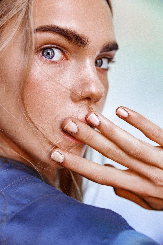 Let me also take a moment for the nails, because nobody talks about the manicures enough and Tracylee's Rodarte mani was seriously good. They were inspired by gold chains, with Morgan Taylor's New School Nude on the nail and Glitter and Gold painted with a details brush gently around the cuticle. Gilded nails—big for spring!