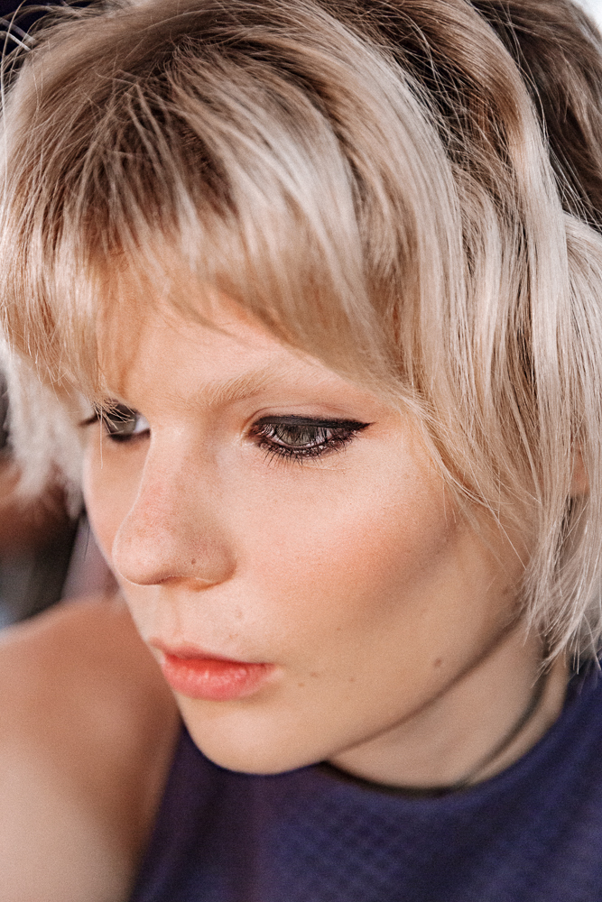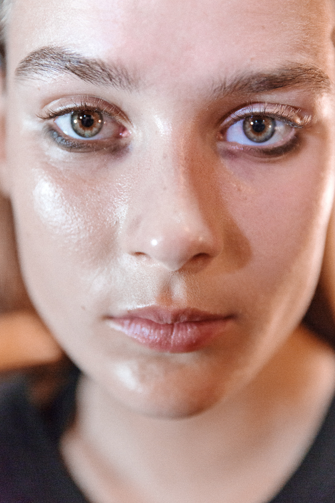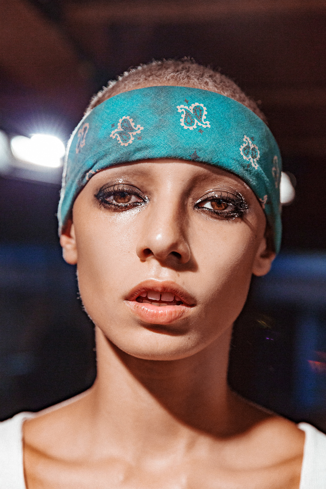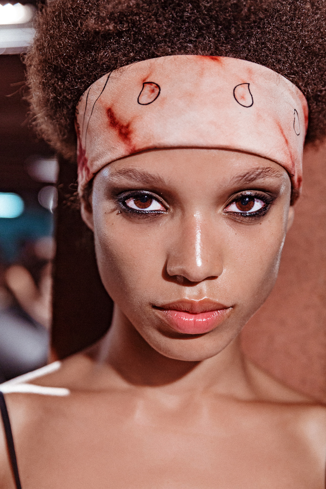 Step 5 (optional): Add some balm—Cora Emmanuel uses Balm Dotcom, but anything sticky will do. Feel free to rub your eyes all you want. It adds to the effect.