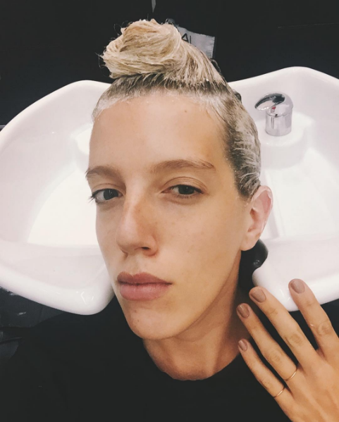 I find the beauty industry magical. You buy a $10 lipstick, it makes you look amazing, and even more importantly, it makes you feel happier. There's nothing better than shopping and testing products. I follow so many girls on Instagram who use 10 things in the morning and another 10 in the evening and keep diaries of their regimens. Like them, I collect tons of products, but I have a core set of my longtime favorites. Like I usually start my day by washing my dyed-blond hair with Oribe Blonde Shampoo and Kevin Murphy Blonde Angel Wash Hair Treatment—those are really good.