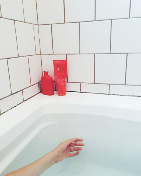 Then I wash my face with Sunday Riley's Ceramic Slip and a Clarisonic. My moisturizer is Crème de la Mer—it works and I notice my husband stealing it, which is a very good sign. In the evening I cleanse with Bioderma Créaline, which I bring back from business trips to Paris, and I do Sunday Riley Good Genes for a gentle lactic acid peel. That's it. Once or twice a week, I have those days when I go from minimum to maximum, and I'll take a bubble bath with salt and mud and follow a cleanser-toner-serum-oil-moisturizer-mask routine. I know I sound old, but I'm not gonna hide the fact that I enjoy spending my Friday evenings applying layers of products to my face and body.