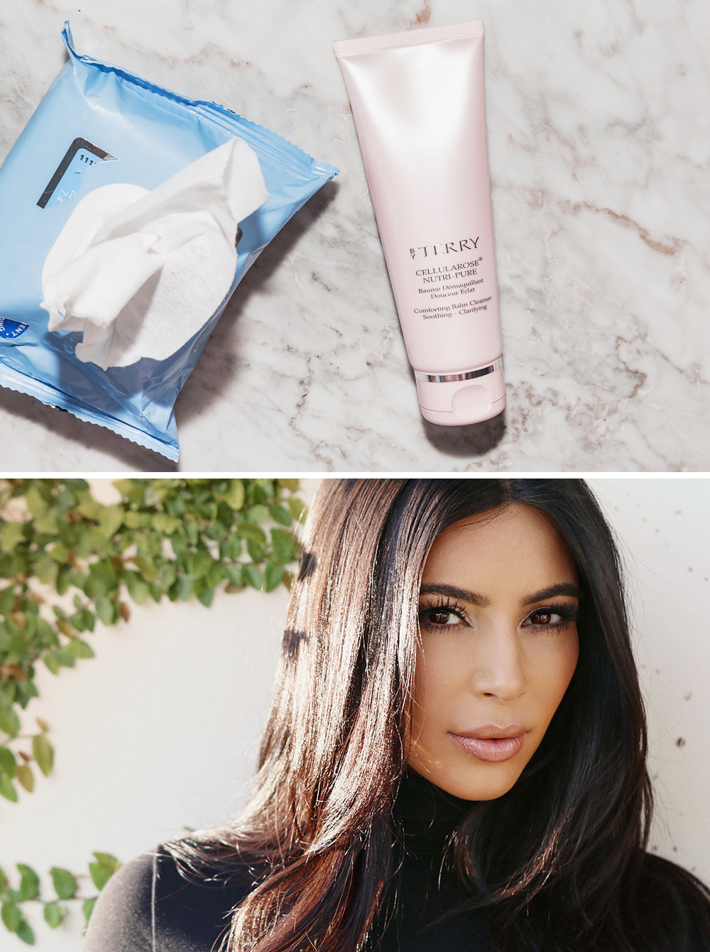 I figure this is because she cleanses well. Kim first removes her makeup with Neutrogena Makeup Removing Towelettes—a classic—and then follows with By Terry's Pureté de Rose Cleansing Gel, which is not a classic because it's discontinued. Instead I opt for their Cellularose Nutri-Pure Rose Cleansing Balm. Together, they soothe my skin into Nirvana. But when I went to apply my night cream, my skin still felt filmy and even pilled a little. Uh, Kim??